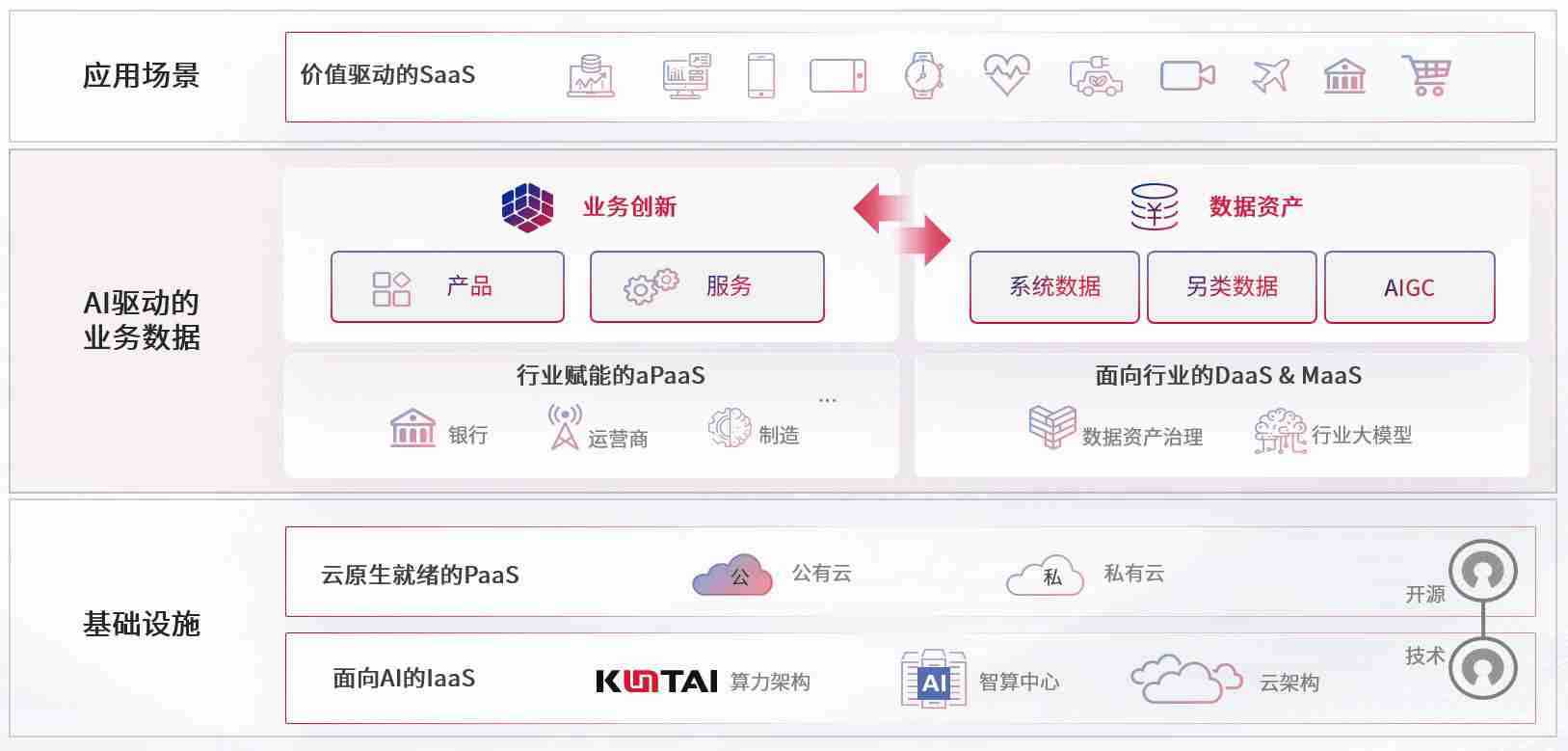 数字时代,,,围绕企业数字化转型的关键要素,,,,欧陆娱乐数码开创性的提出数云融合战略和技术体系框架,,,着力在云原生、、、、数字原生、、、、AI原生和信创产业上架构产品和服务能力,,,,为处在不同数字化转型阶段的快消零售、、、汽车、、、金融、、、医疗、、、、政企、、、教育、、、、运营商等行业客户提供泛在的敏捷IT能力和融合的数据驱动能力,,,构建跨界融合创新的数字业务场景和新业务模式,,,,助力企业级客户建立面向未来的核心能力和竞争优势,,,全面推动社会的数字化、、智能化转型升级。。。